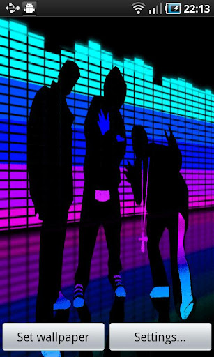 TO USE: Home -> Press MENU -> Wallpapers -> Live Wallpapers -> Disco Equalizer Wallpapers