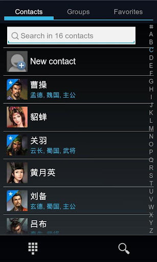 • Long press the contacts button(at left-bottom corner of dialer view) to quick access favorites